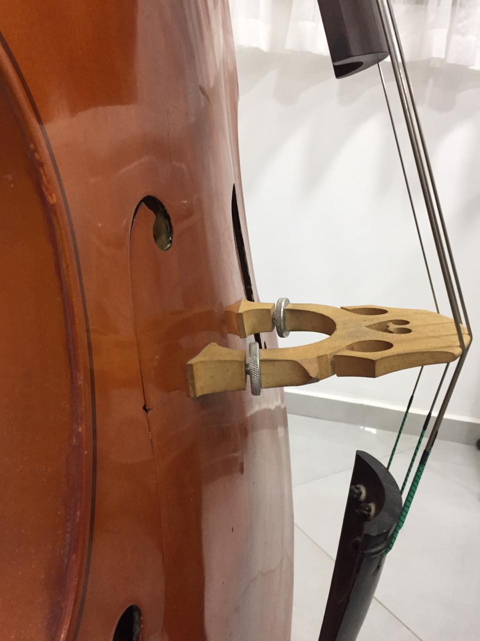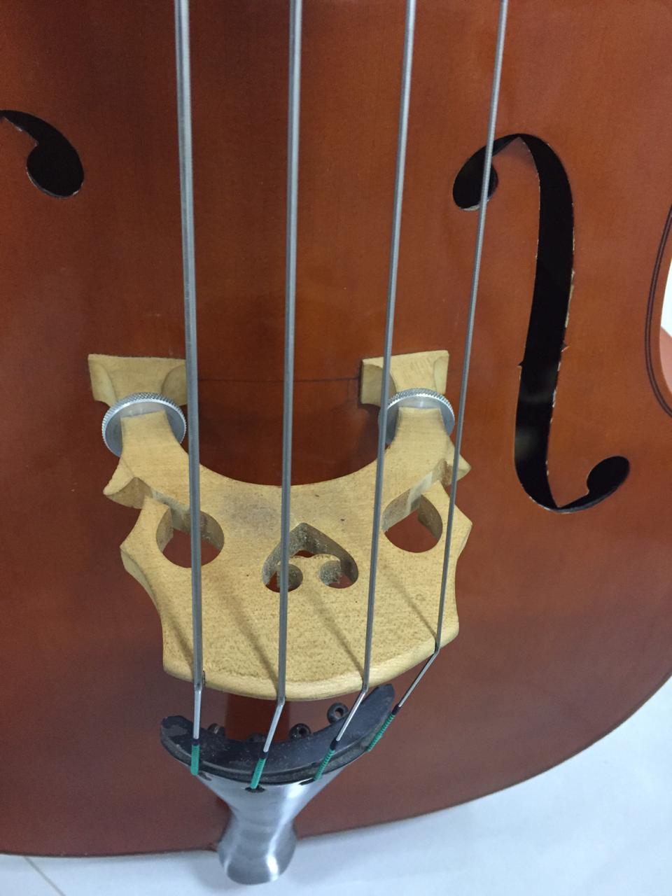 Foi regulado pelo Paulo Gomes, e recebeu o cavalete regulável e cordas Evah Pirazzi.