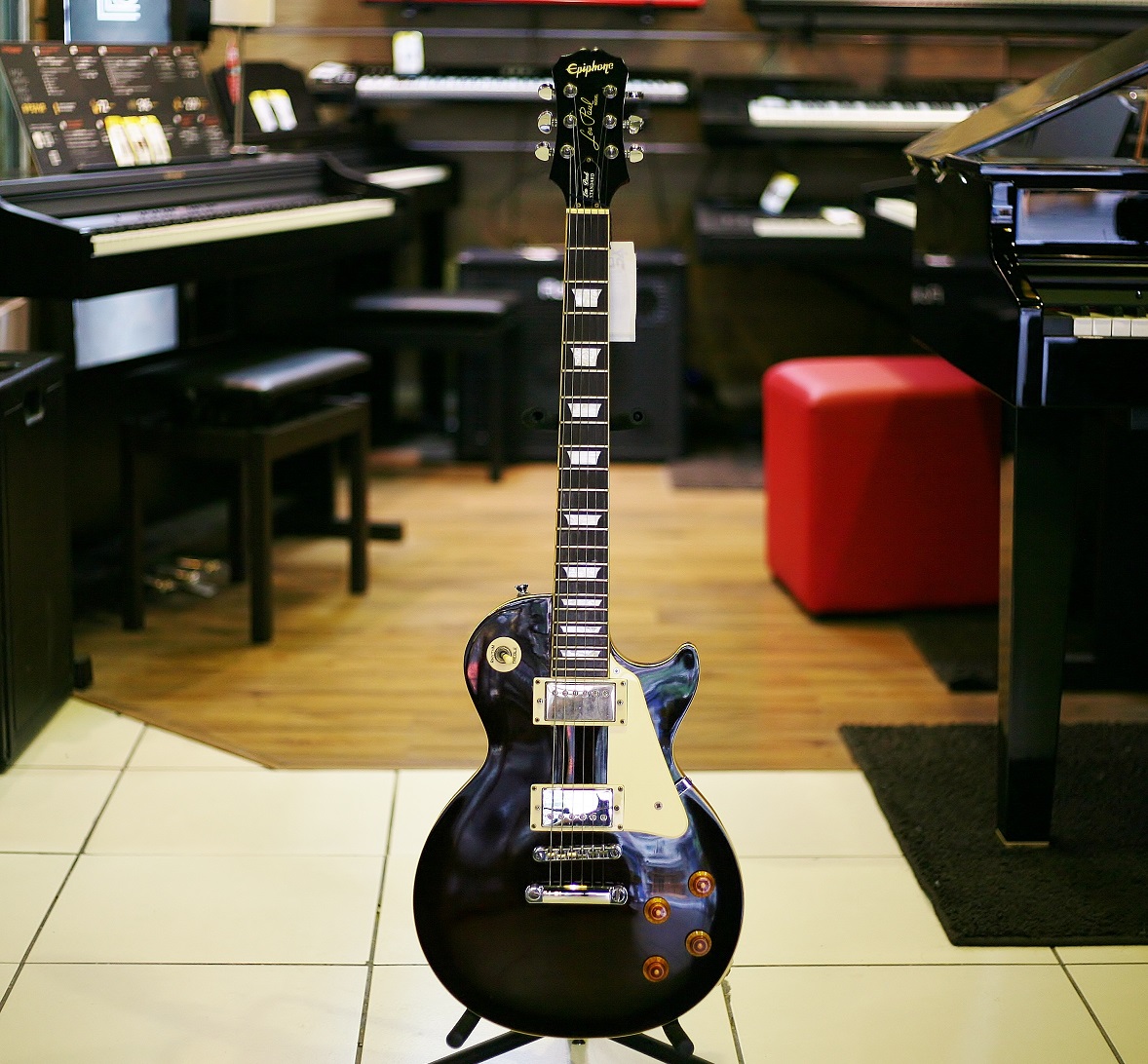 Les Paul Standard com timbre muito bom e como as tradicionais, braço em "C". Instrumento sensacional custo benefício. Guitarra com poucos detalhes. Acompanha Bag