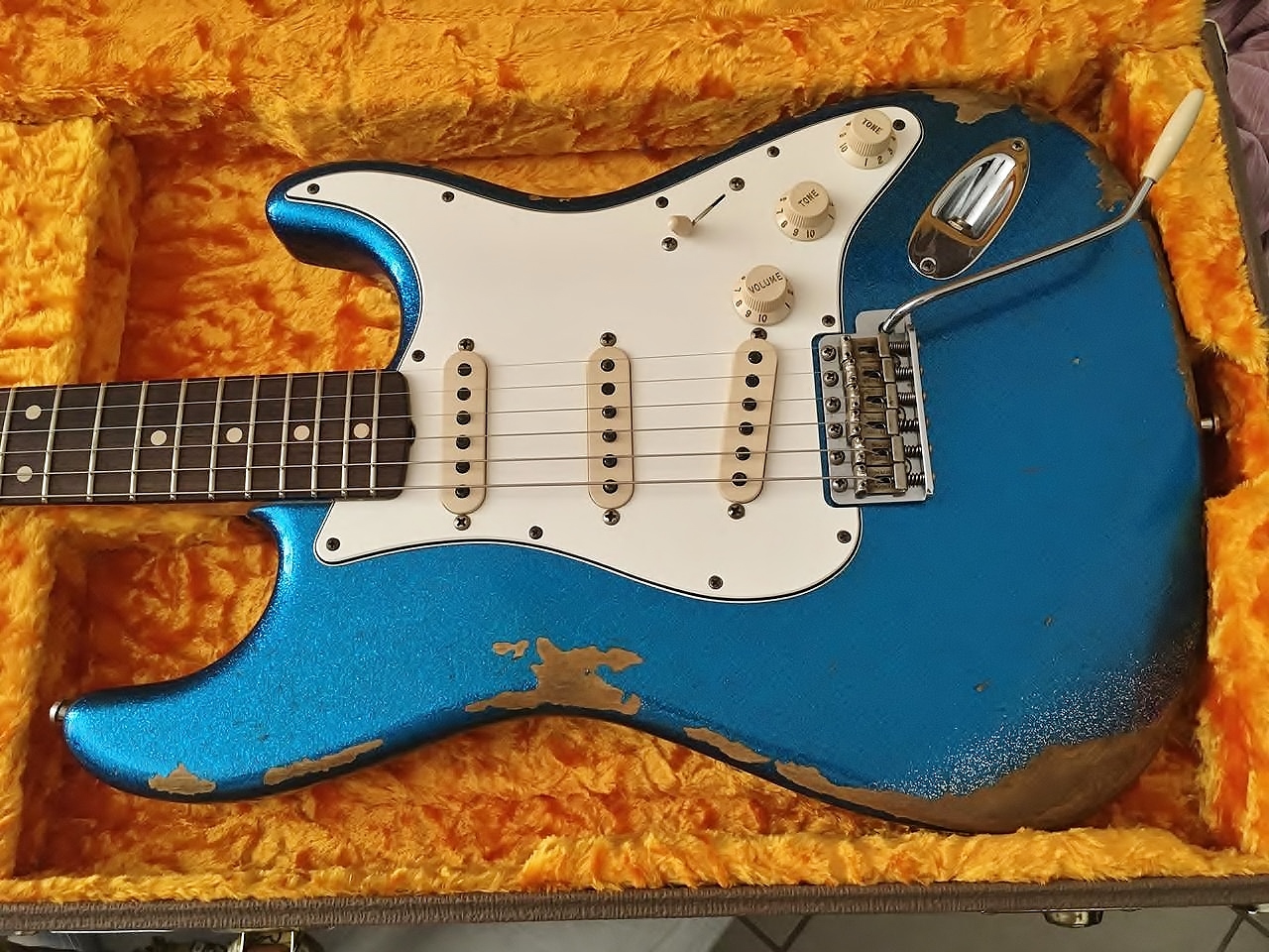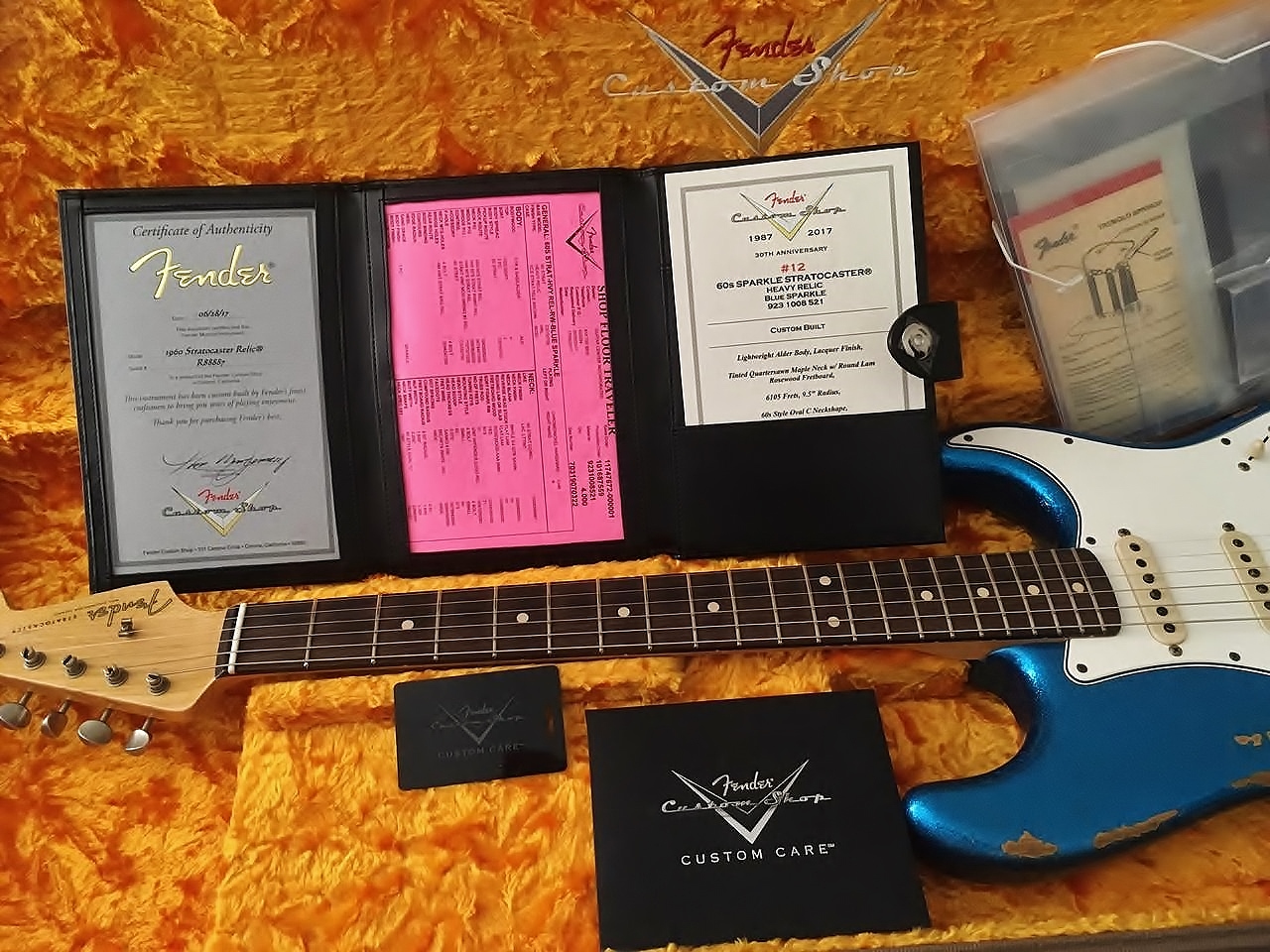 A linha Custom Shop tem guitarras muito diferentes com acabamento e particularidades. Com o corpo em Alder e acabamento laqueado, possui braço em Maple e escala Rosewood. Tem a curvatura do braço em 9,5” radius e a tradicional “pegada” em C dos anos 60s. Todo hardware no padrão Vintage Modified. Um instrumento único e elegante para os mais exigentes músicos. Unidade impecável com case original Fender, todos os certificados e tags acompanham o produto