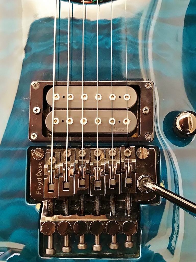 A guitarra está intocada na regulagem do artista. Instrumento de grande valor histórico.
