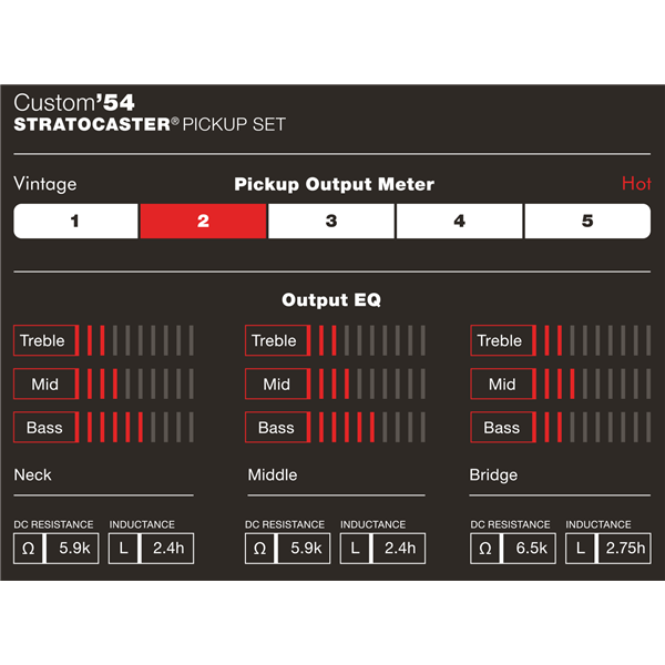 Conhecidos pelo som de várias guitarras Fender Custom Shop Stratocaster®, os captadores Custom Shop Fender '54 Strat recriam autenticamente o som definido e a sustentação elevada que fizeram da Stratocaster a guitarra mais reverenciada do rock história. Esses captadores single-coil foram criados para reproduzir fielmente os timbres das guitarras Stratocaster de 1954.