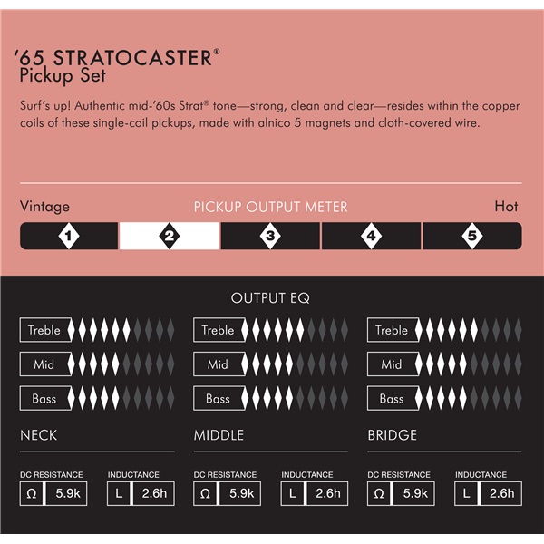 Desde a construção da bobina vintage até o tecido original da fiação usado na época, todos os captadores Fender Pure Vintage são precisamente fabricados dentro de especificações que garantem o autêntico e tradicional timbre Fender.